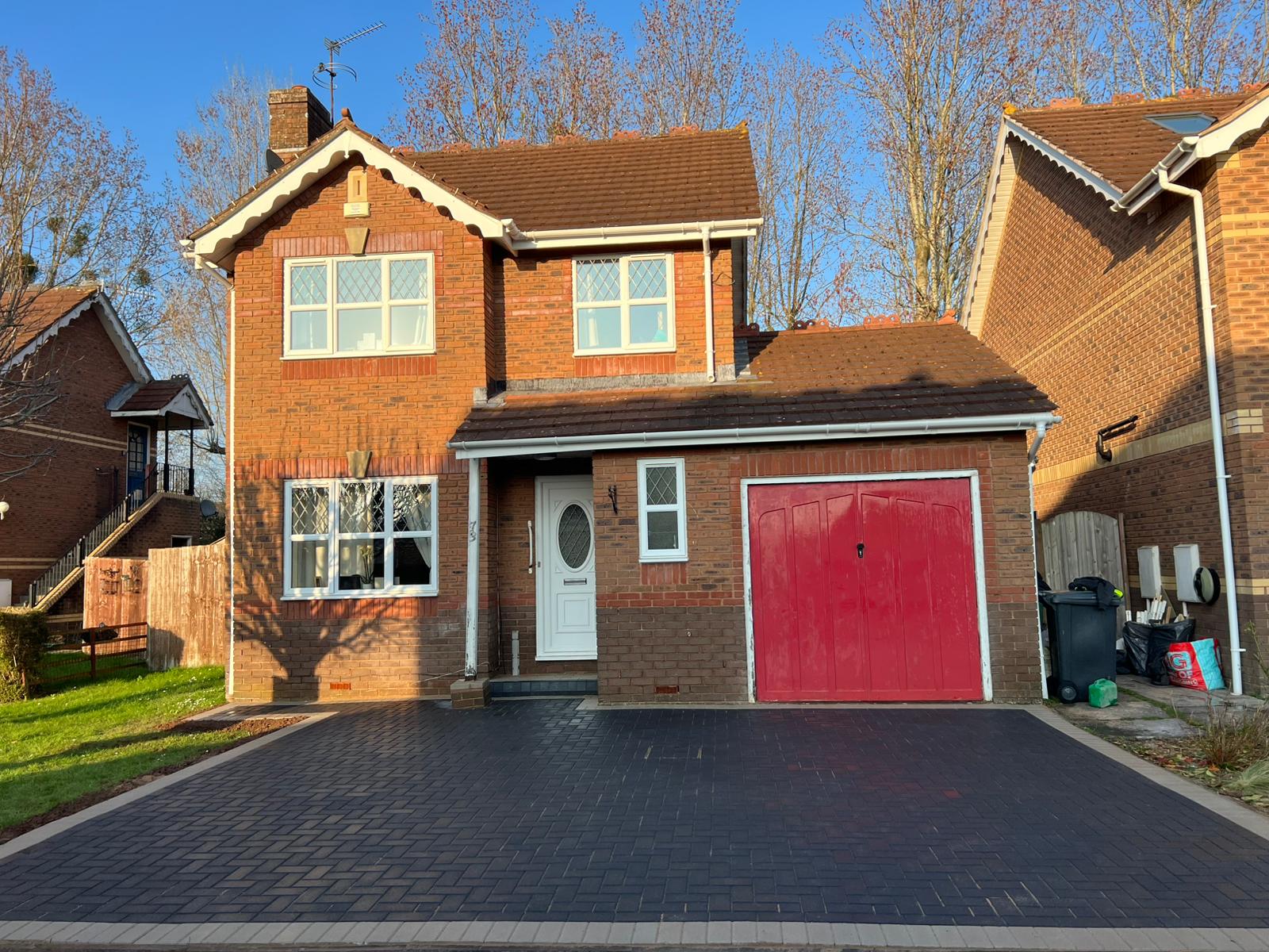 Supplied and installed a sand / grit base for laying paving, Installed paving on top of the sand, Laid the paving in a °90 degree herringbone pattern, The paving used was block paving, All open edges of paving set in concrete, Machine vibrated and compacted the paving