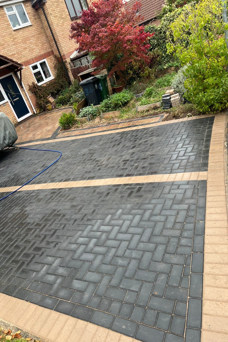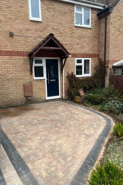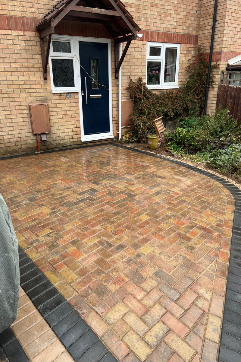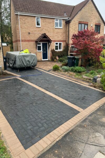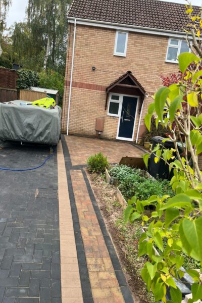 Enhance your home's frontage with our skilled installation of a new block paving area in Bradley Stoke, South Gloucestershire. Blending warm Autumn mix blocks with sleek charcoal accents, this durable design creates a welcoming, low-maintenance entrance that boosts kerb appeal and stands up to daily traffic.