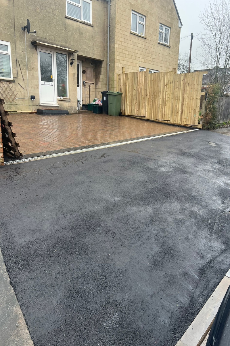 New block paving driveway and drop kerb installation completed in Wick, South Gloucestershire. Block paving laid for the driveway, drop kerb installed to allow vehicle access from the road.