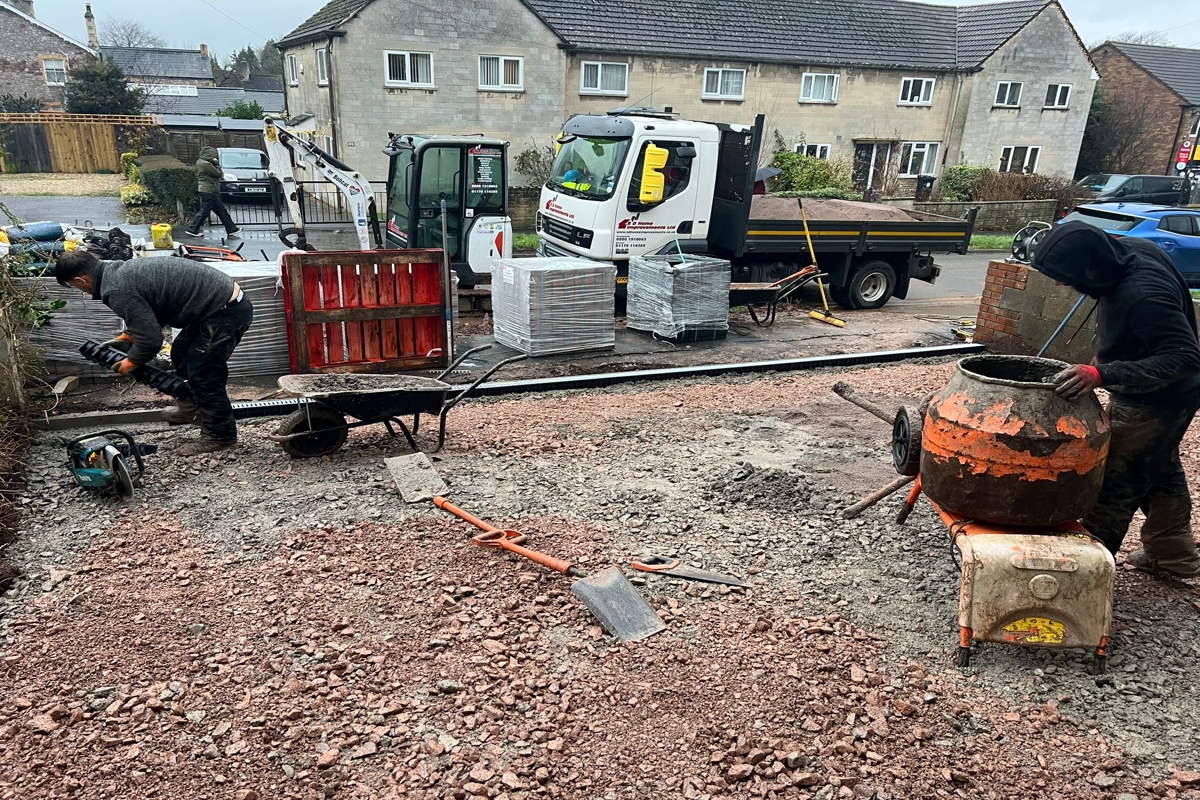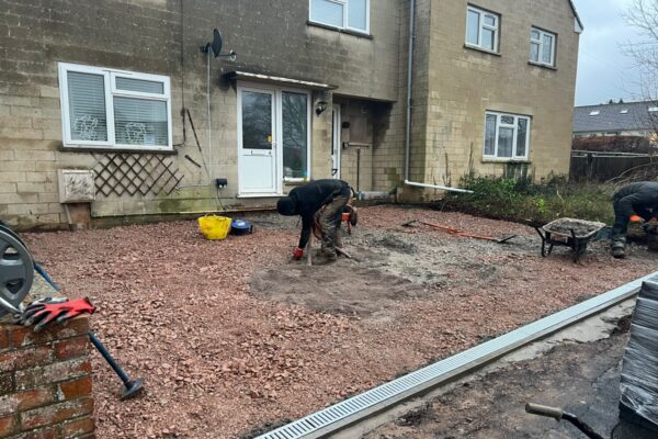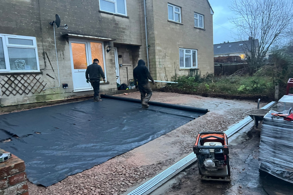 Dug out and removed the area, Graded off the surface, Redesigned the layout of the area, Supplied and installed MOT Type 1 foundation, Supplied and installed membrane sheeting, Installed new kerbing set in concretePaving Installation
