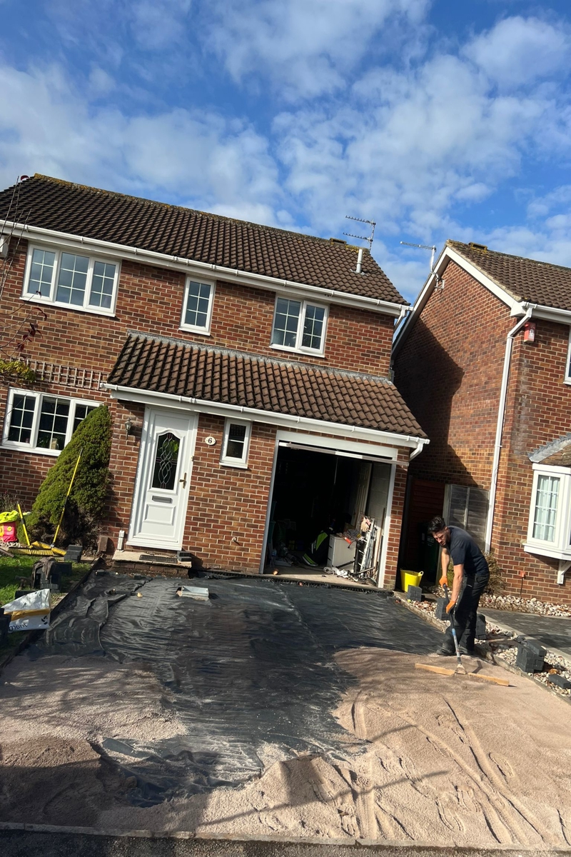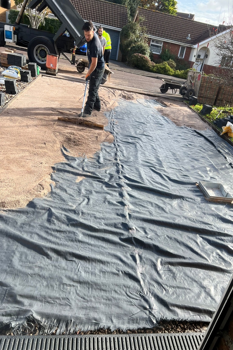 Dug out and removed the area, Graded off the surface, Redesigned the layout of the area, Aco channel drains installed, Adjusted the overall levels of the area, Supplied and installed MOT Type 1 foundation, Supplied and installed membrane sheetingPaving Installation