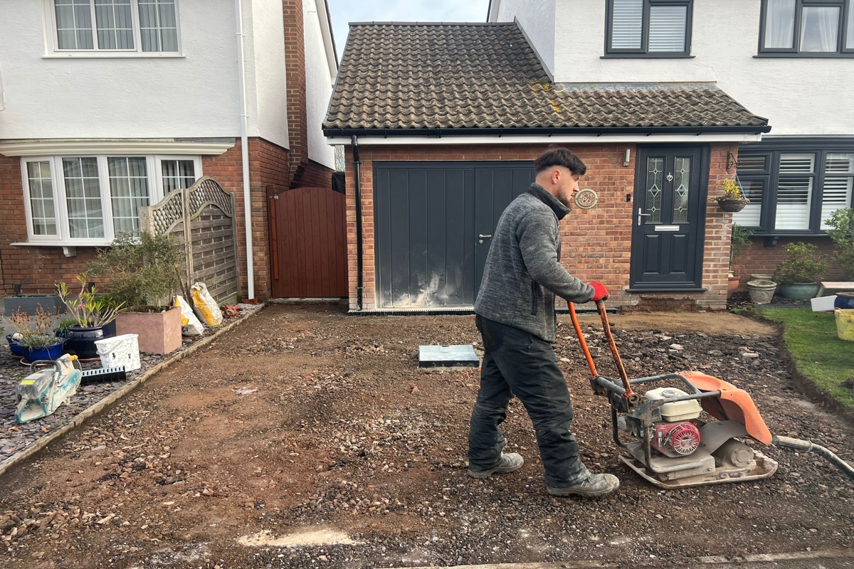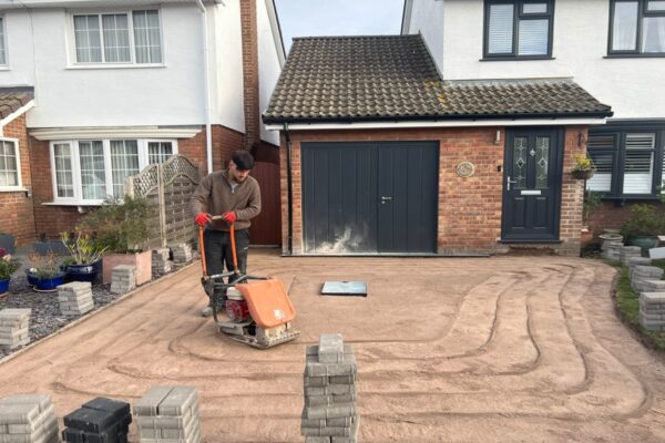 Dug out and removed the area, Graded off the surface, Supplied and installed MOT Type 1 foundation, Supplied and installed membrane sheeting, Installed new kerbing set in concretePaving Installation