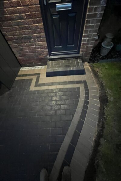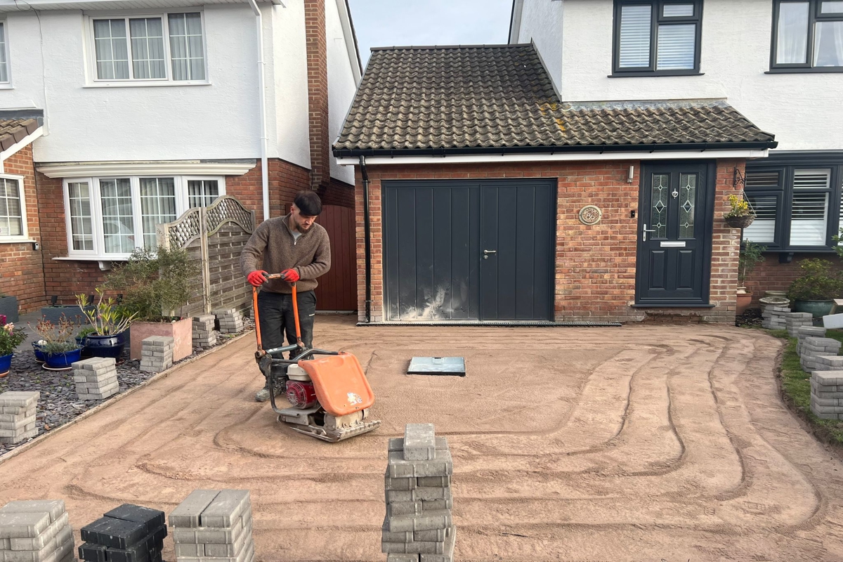 Supplied and installed a sand / grit base for laying paving, Installed paving on top of the sand, The paving used was Tegula paving, Laid the paving in a staggered/random pattern, All open edges of paving set in concrete, Machine vibrated and compacted the paving